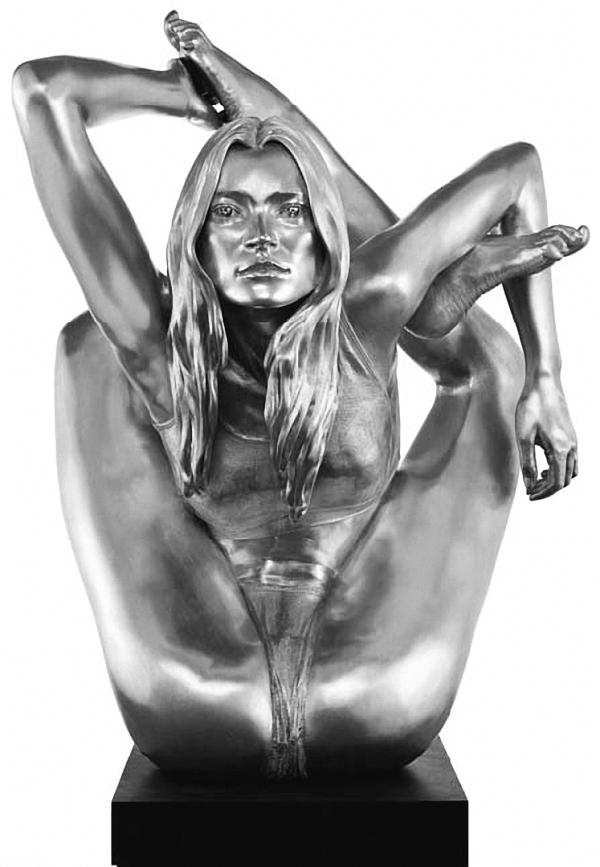 В 2008 г. Британский музей заказал скульптурное изображение модели Кейт Мосс в натуральную величину. Скульптура, именуемая «Сирена», сделана из чистого золота и считается самой крупной золотой скульптурой, созданной со времен древнего Египта, хотя подтвердить истинность данного утверждения практически невозможно. «Сирену» в качестве выставочного экспоната поместили рядом со статуей купающейся Афродиты. Первое мое впечатление от взгляда на изображение Кейт Мосс было очень странным – она вызвала у меня ощущение крошечной, что еще больше подчеркивалось неудобной йогической позой, в которой была запечатлена Кейт. Хотя, возможно, таково воздействие оптической иллюзии – в конце концов, не часто мы сталкиваемся с таким количеством сверкающего металла. Золото, как я с разочарованием обнаружил, не отполировано до высокого блеска, а отливает холодной сталью, и зернистая текстурированная поверхность бликует. Другими словами, я не увидел того ровного сияния золота, которого ожидал. Я обнаружил и определенные изъяны в литье, которых более умелый золотых дел мастер смог бы избежать.