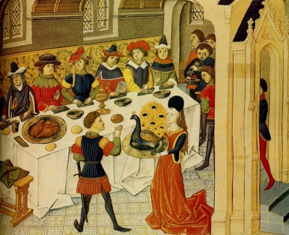 Важный момент пира – подача птицы. Над ней приносились клятвы.