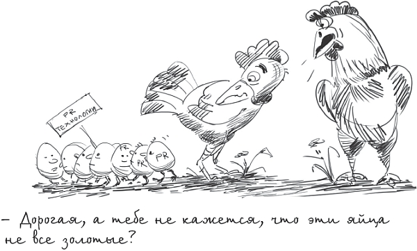 Интересно, что некоторые коллеги по PR-цеху – очевидно, в прямой связи с вышеупомянутой тенденцией – стали настойчиво избегать общеупотребительного термина, заменяя его всяческими эвфемизмами. Но мы считаем PR, связи с общественностью и пиар вполне приличными словами. Надо только понимать, что для русского человека это разные слова. Собственно, в соответствии с тем смыслом, который в них вкладывают, мы и будем их употреблять: PR, public relations (да и паблик рилейшнз – почему бы нет? есть же лизинг и франшиза), связи с общественностью – как обозначение деятельности соответствующих профессионалов: PR-специалистов, PR-технологов. А пиар – естественно, без кавычек: это ведь в одном ряду с гламуром и фитнесом – как новое явление общественного сознания, с которым (пока) бесполезно бороться, но нужно считаться. Пиарщики в этом понимании будут обозначаться как хитрые и предприимчивые люди, может быть, не вполне профессиональные, но «держащие нос по ветру» (увы, в нашей отрасли уже не первый год заметен «кризис перепроизводства» таковых… впрочем, об этом ниже).