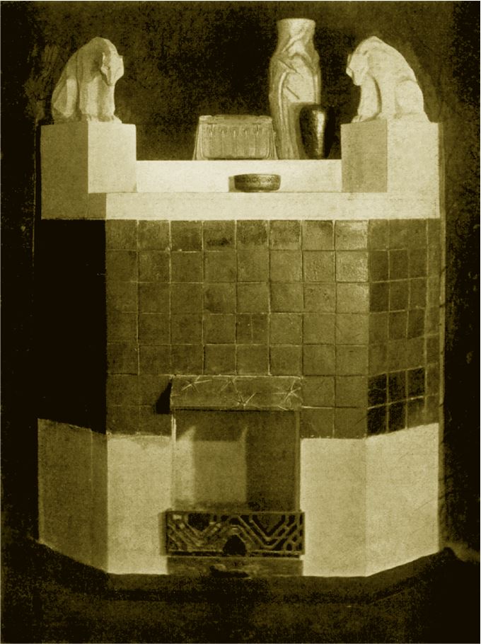 И. Фомин. Камин из песчаника с красными изразцами. Экспонат выставки Нового стиля. Фото 1903 г.