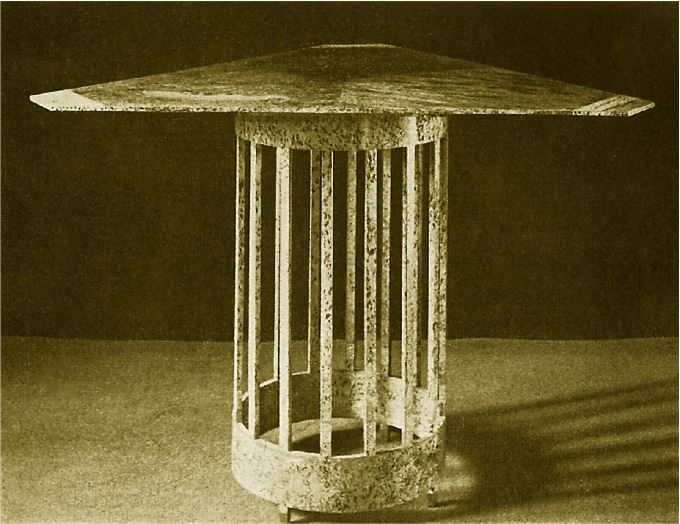 И. Фомин. Стол карельской березы с эмалью. Экспонат выставки Нового стиля.