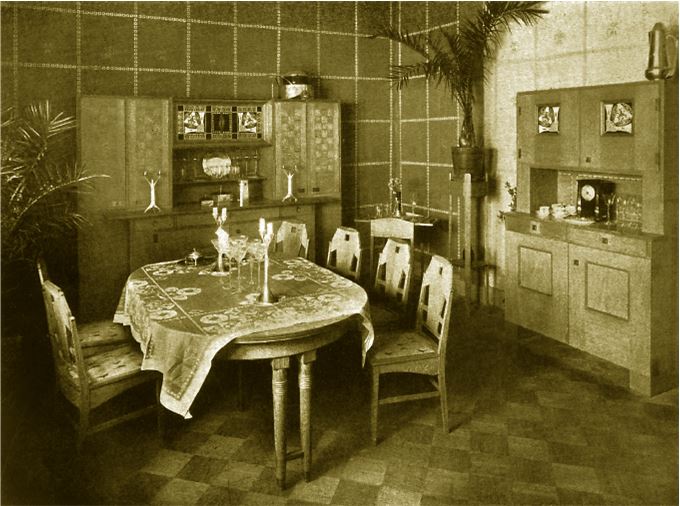 Й. Ольбрих. Столовая серого дуба. Экспонат выставки Нового стиля. Фото 1903 г.