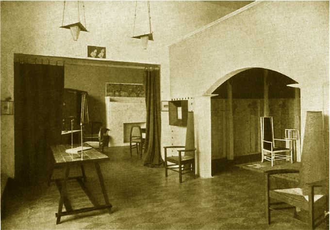 Кресла Ч. Макинтоша. Стол К. Коровина. Экспонат выставки Нового стиля.