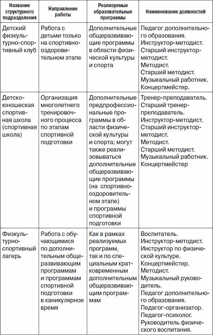 Если мы физкультурно-спортивная организация, но осуществляем обучение, то какие должности работников должны быть?