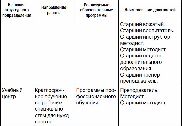 В данном подразделении осуществлять педагогическую деятельность могут только педагогические работники и нельзя использовать, например, должность «тренер».