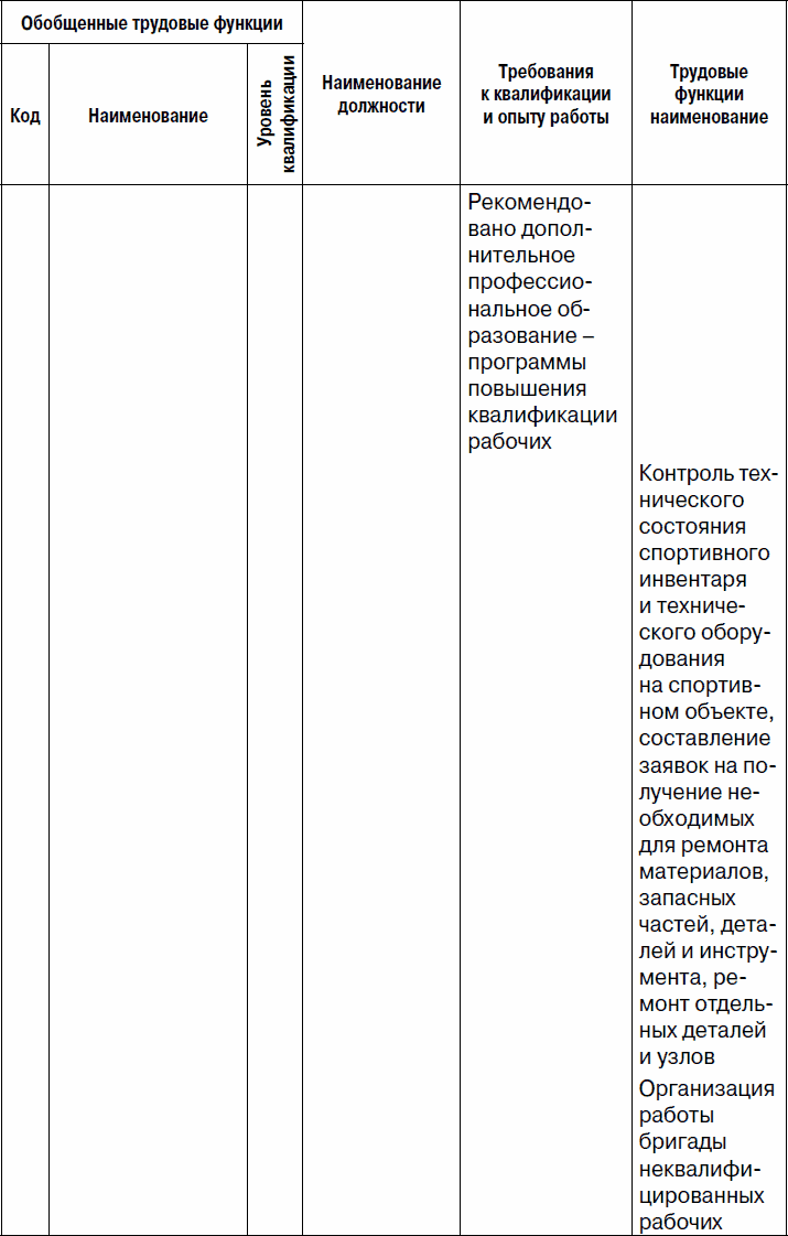 Рассмотрим наглядно на примере Профессионального стандарта «Специалист по обслуживанию и ремонту спортивного инвентаря и оборудования» (табл. 3).