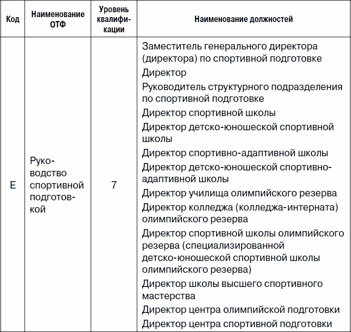 профессиональным стандартом «Руководитель организации (подразделения организации), осуществляющей деятельность в области физической культуры и спорта» – в части руководства физкультурно-спортивной деятельностью, прежде всего спортивной подготовкой.