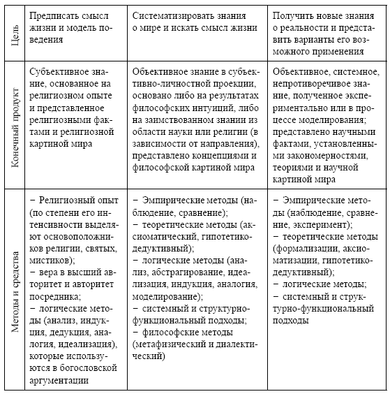 Сопоставление философии, религии и науки как форм мировоззрения