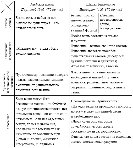 Таким образом, атомизм соединил в одной картине рациональные моменты двух противоположных учений – Гераклита и Парменида: мир вещей текуч, изменчив, а мир атомов, из которых состоят вещи, неизменен, вечен.