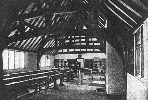Школа, в которой учился Шекспир. Классная комната (По преданию, Шекспир сидел в левом углу около полок)