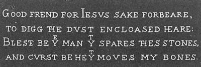 Такая честь оказывалась местному богачу и джентльмену, – в надгробной надписи ничего не говорилось о Шекспире-поэте; она только настаивала на неприкосновенности праха и проклинала того, кто потревожит кости мертвеца. Какое впечатление произвела кончина поэта за пределами Стратфорда, трудно сказать: современная литература не оставила никаких данных на этот счет, за исключением разве сонета, приложенного впоследствии к первому изданию сочинений Шекспира в 1623 году. Сонет подписан именем Гуго Голлэнда; по содержанию его можно судить, что он сочинен вскоре после смерти поэта.