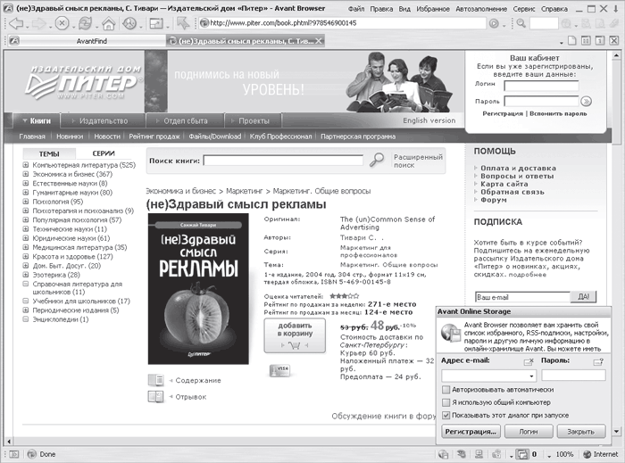 Браузер Avant Browser позволяет более рационально использовать Интернет. Он имеет много дополнительных возможностей, связанных как с серфингом, так и с изменением интерфейса самого браузера (рис. 1.22).