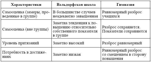 Рассмотрим подробнее результаты прикладных исследований Черкасовой. Ею были исследованы учащиеся вальдорфской школы г. Самары и Самарской гимназии. Согласно этим исследованиям, базовым психологическим состоянием, создающим предпосылки для развития негативных личностных черт в системе вальдорфских школ, является ситуативная тревожность. Она проявляется в нарастании нерешительности, незащищенности, неуверенности, в ожидании неудач в конкретных социальных ситуациях. Ситуативная тревожность может закрепляться и приводить к формированию личностной тревожности. Как замечал Э. Фромм, тревога возникает не всегда в детстве, а когда человек отказывается от «Я», делает как все, т. е. становится «конформным автоматом». Тревога является эмоциональным способом разрешения ситуации[127].
