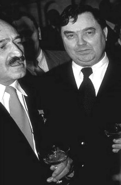 А. И. Микоян и Г. М. Маленков на приеме в посольстве США. Москва, 1955 г.