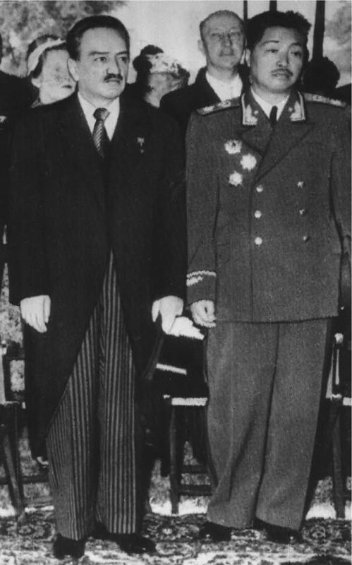 Микоян на церемонии инаугурации. Справа – глава делегации КНР маршал Хэ Лун (ГАРФ)