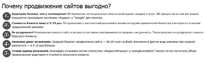 Если у вас на сайте еще не указаны преимущества, начинайте действовать немедленно!