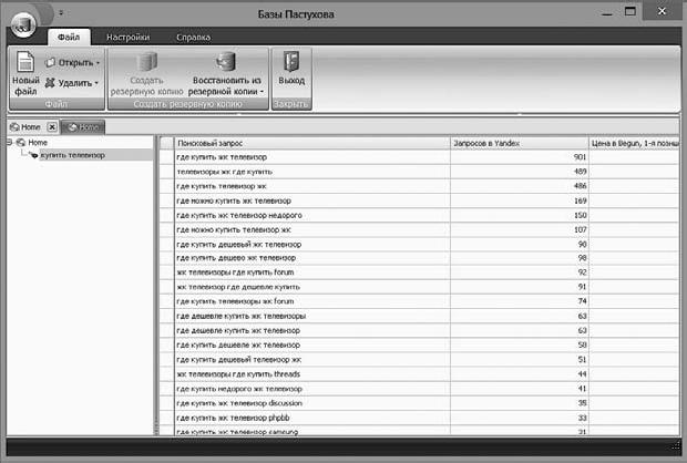 Базы запросов. База Пастухова – это база русскоязычных запросов, состоящая из более чем 210 млн запросов с указанием частотности в основных поисковых системах (рис. 3.3). В отличие от wordstat.yandex.ru база Пастухова учитывает все словоформы, что очень полезно при подборе обширного семантического ядра. База поставляется с собственным интерфейсом (оболочкой) и в виде текстового файла. Работать с таким количеством запросов вручную крайне сложно, поэтому придется задействовать программиста, который может создать собственный интерфейс, подходящий для решения конкретных задач.