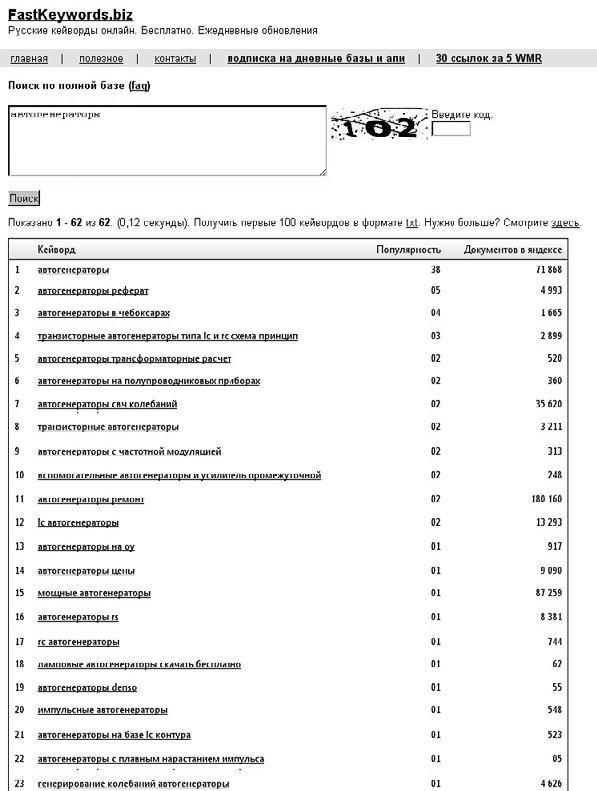 FastKeywords.biz – сервис, предоставляющий базы запросов, введенных в течение дня (рис. 3.4). Можно использовать как дополнительный источник данных.