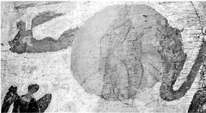Бегство жены в пустыню. Фрагмент иконы Апокалипсиса из Успенского собора в Москве, ок. 1500 г.