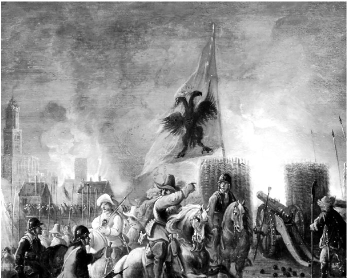 Питер Меленер. Осада Магдебурга (1631). Фрагмент картины. Нац. музей Стокгольма