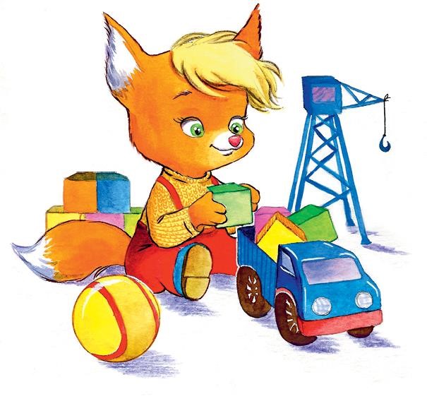 Мася вместе с мамой разложили по полочкам все вещи. Лисёнок переоделся в шортики и футболку. И мама разрешила ему пойти в группу к детям.