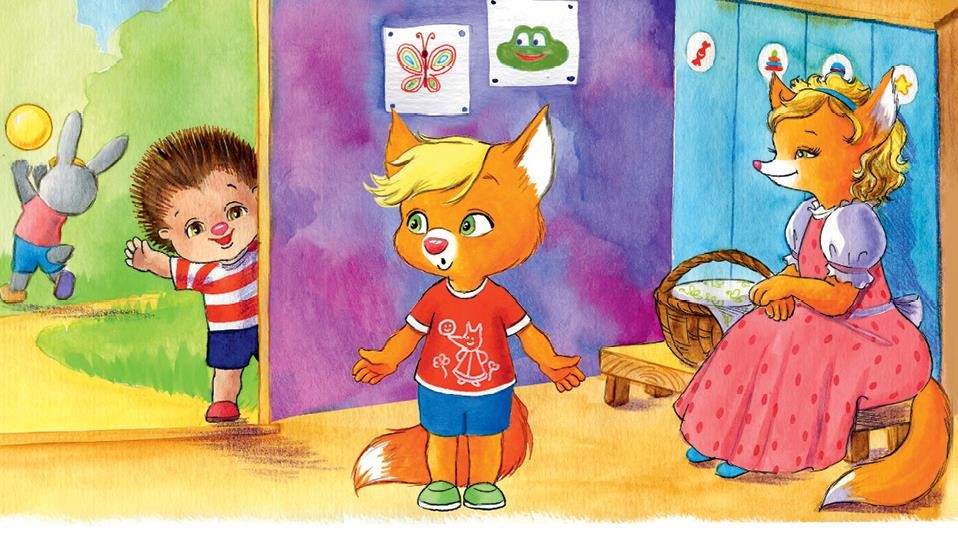 – Сынок, ты уже большой и теперь будешь ходить в детский сад, а я – на работу. В садике у тебя будет много друзей, с которыми ты будешь играть. Твой друг ёжик Пых будет с тобой в одной группе. А ещё в садике есть воспитательница – енотиха Ласка. Она учит детей рисовать и клеить, лепить и вырезать, придумывает весёлые игры, читает им сказки и ходит с ними гулять.