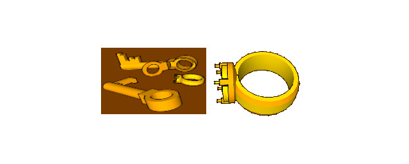 Когда брат с сестрой подбежали к концу тропинки, то увидели, что на земле лежит не один ключ, а два золотых ключа и какое-то маленькое золотое колечко с круглой короной на нем. Большой ключ был похож на дедушкин старый крючковатый ключ от амбара, второй ключ был похож на какой-то старинный предмет, напоминающий ключ от навесного замка. На этом предмете была открыта маленькая дверца, из которой, видимо, и выпало золотое колечко.