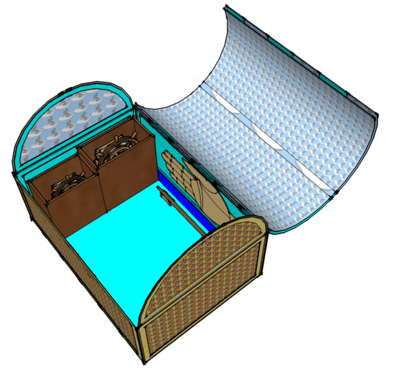 Андреа приложила туда колечко, попав короной в эти прямоугольники, надавила на них, и повернула кольцо влево. Раздался тихий щелчок, и крышка сундучка откинулась. Теперь можно открыть сундучок полностью.