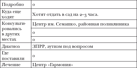 Мы пытаемся представить себе ребенка, чтобы понять, кто будет знакомиться с ним на первичном приеме. Спрашиваем родителей о том, что их беспокоит в развитии ребенка, узнаём, поставлен ли диагноз. Обычно психолог, ведущий запись, старается уточнить следующие моменты: