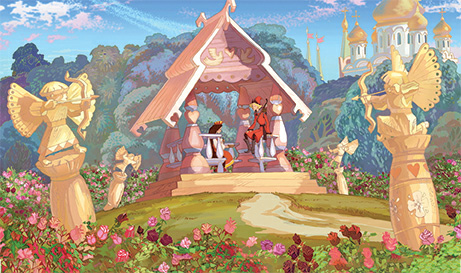 Князь резко раздвинул кусты роз и увидел невдалеке деревянную беседку с коньками на крыше, где и сидела его племянница с юношей в красном кафтане. Забава поднесла ко рту трубочку, дунула в неё, и – вот чудо! – из трубочки стали вылетать воздушные пузыри, одни поменьше, другие побольше. Они переливались в лучах солнца и улетали высоко-высоко в небо, а затем почти беззвучно лопались. Парень и девушка смеялись, а князь, глядя на всё это, хмурился.