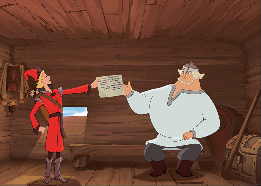 Конь резко затормозил, поднимая столбы пыли. С него в спешке соскочил юноша в красном кафтане и бегом направился к высокой бревенчатой башне. Распахнув дверь дома и влетев внутрь, он остановился посреди комнаты и, гордо выпрямившись, провозгласил: