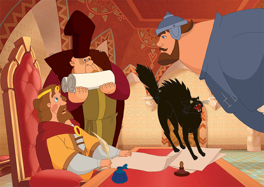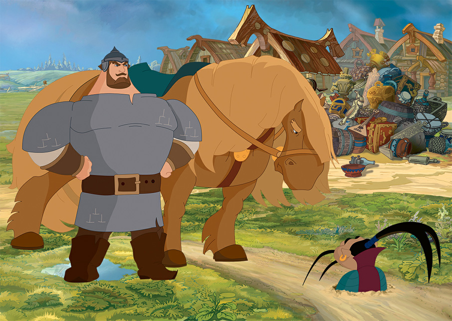 – Я-то пойду, князь, только на службу впредь меня не зови. Точка! – грозно сказал богатырь и, отстегнув от пояса меч, бросил его с такой силой, что князь, перепугавшись, спрятался под стол вместе с советником, который всё это время стоял рядом с бумагами в руках.