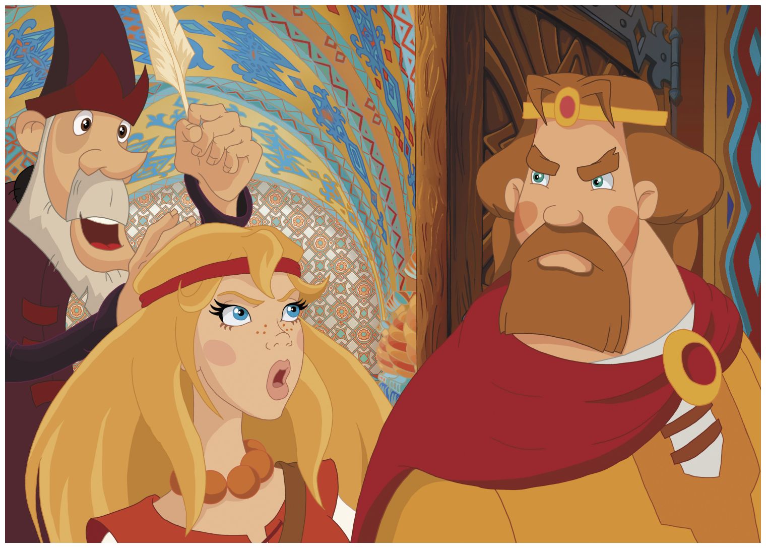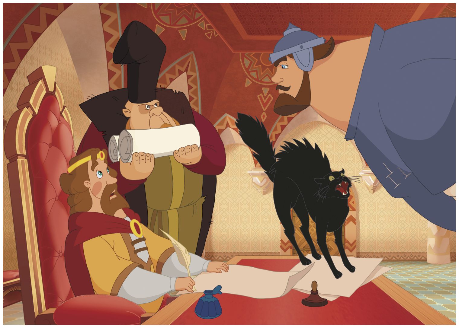 В этот момент в тронный зал влетели два человека, один из них, с бородой, закричал: