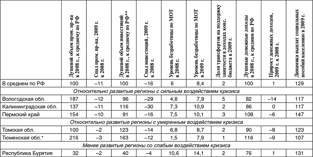 Очевидно, что в регионах вполне осознается: кризис создал дополнительный потенциал, стимулы к позитивным изменениям, предпосылки для обновления и оздоровления сложившейся ситуации. Однако в разных регионах и в различных сферах этот позитивный потенциал был реализован по-разному и далеко не везде в полной мере. Дальнейший анализ позволит продемонстрировать, насколько на региональном уровне были использованы предпосылки обновления, которые возникли в условиях кризиса, и насколько проводимые как реакция на кризис преобразования смогли преодолеть сложившиеся в докризисный период барьеры к эффективному региональному развитию либо, напротив, способствовали их усилению.