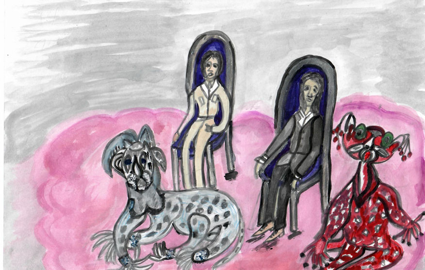 Вскоре повелитель начал выказывать своё возмущение коллеге, но тут послышались знакомые шлепки лап питомцев. Двери распахнулась; животные влетели в залу и сразу выбрали себе места: Падигор сразу улёгся у ног Терпа-младшего, оскалившись на доктора Вебера; Девочка-Кордигор, покачивая своими серёжками, чинно усевшись у ног повелителя, положила морду на его колени.