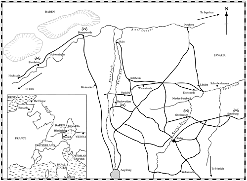 They had come here by stealth to carry the war deep into the south. An army of many nations: English and Scots, Hanoverians and Prussians, Hessians, Danes and Dutch. They had but one purpose: the defeat of France and her ally, Bavaria. The French King, Louis XIV, they knew to be a power-mad maniac, styling himself the Sun King. It was clear that he would not be content until he possessed all Europe, from Spain to Poland. And so it was, on this sultry day in early July, as afternoon drifted into evening, that fate brought these many thousands of men to Donauwö rth, a little Bavarian town with its ancient high walls and ramparts.