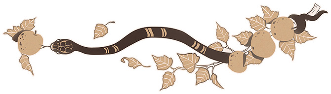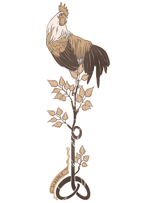 Создания, которые населяют Космическое древоКроме того что Иггдрасиль поддерживает девять миров, он является обиталищем различных существ, которые его оберегают и получают от него жизненную силу. На самых высоких ветвях примостилась гигантская орлица[3]. Некоторые видят в ней мудрую птицу Хрёсвельг – хранительницу древнейших секретов. Ее взор постоянно устремлен к горизонту, чтобы вовремя оповещать богов о внезапном появлении врагов, а взмах ее крыльев рождает ветра в человеческом мире. На ее клюве сидит ястреб по имени Ведрфельнир: вместе два хищника олицетворяют собой наивысший духовный подъем. Как мы уже знаем, под корнем Иггдрасиля ползает ужасный змей Нидхёгг, который неустанно подтачивает священное древо.