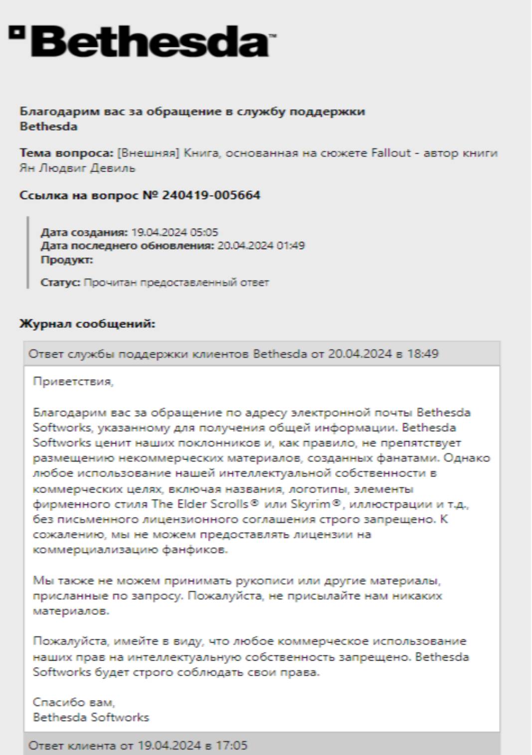 «История одинокого путника» – это некоммерческая фанатская книга с историей, одобренная Bethesda soft works, они и не против моей книги что следует из нашего официального диалога на эту тему.