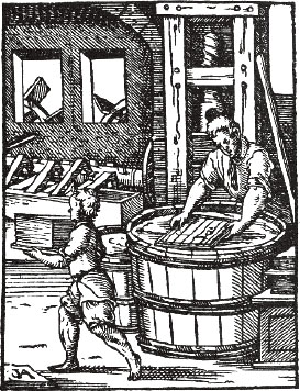 So from China to the Arab world, and through the Byzantine Empire into Christian Europe, paper made its slow procession – and slow precisely because hand papermaking was a slow process. It was also cold, hard work: for the vatman, who dipped the mould into the vat, and lifted it out, allowing the water to drain; for the coucher, who removed the wet sheet from the mould and laid it on felt; and for the layman, who stacked and pressed the sheets and hung them to dry, sheet after sheet after endless weary sheet. And this is not to mention all the other equally backbreaking and even less glamorous tasks: before the invention by the Dutch of the so-called Hollander beater in the early eighteenth century there was the shredding and beating of the rags for the pulp; and the dipping of the finished sheets in sizing; and the polishing of the pages by hand, or calendering them between rollers; the eternal smoothing out of ridges and wrinkles. Dard Hunter, who knew papermaking from the inside out, and the outside in – as both a scholar and a practitioner of the craft, and as the founder of his own paper mill, and a paper museum, and the author of one-man books, The Etching of Figures (1916) and The Etching of Contemporary Life (1917), for which he made the paper, and designed and cut and cast the typeface, and etched the pictures and wrote the words – believed that papermakers needed unusually robust constitutions because ‘the constant stooping posture, combined with the heat of the paper stock in the vat, caused them to grow old prematurely … at fifty many of these hard-working craftsmen appeared to have reached the allotted threescore years and ten’.