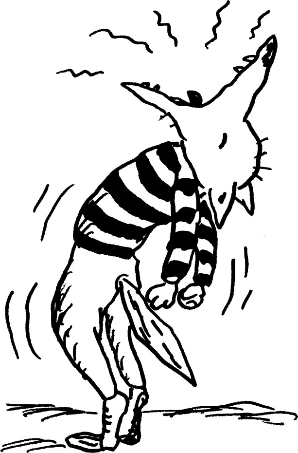 Shame about Dad catching a touch of the Mange, so now he is all germy. You say Smellybreff cannot come near Dad for ages, in case he might catch it. His fur will go itchy and drop off in rugsize lumps, oo-er.