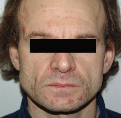 3. Количество узлов более 4, присутствуют рубцы, стойкие пигментные нарушения, келоиды.