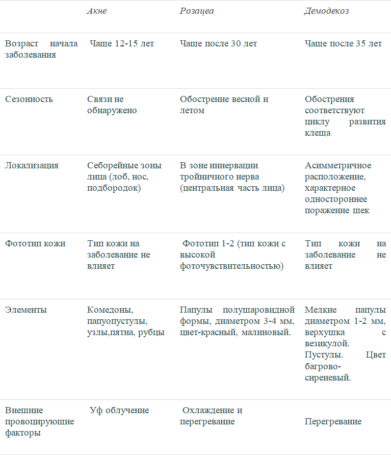 3.3. Как различить заболевания: акне, розацея, демодекоз