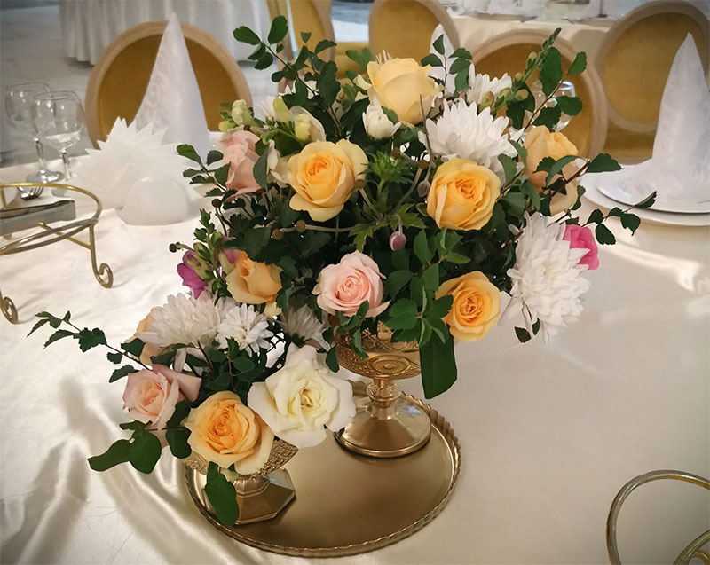 Самыми первыми популярными букетами в России были букеты для подношения. Букеты из белых роз подносили невестам, букеты из ярких цветов – дамам в праздники. Украшали цветами бальные залы.