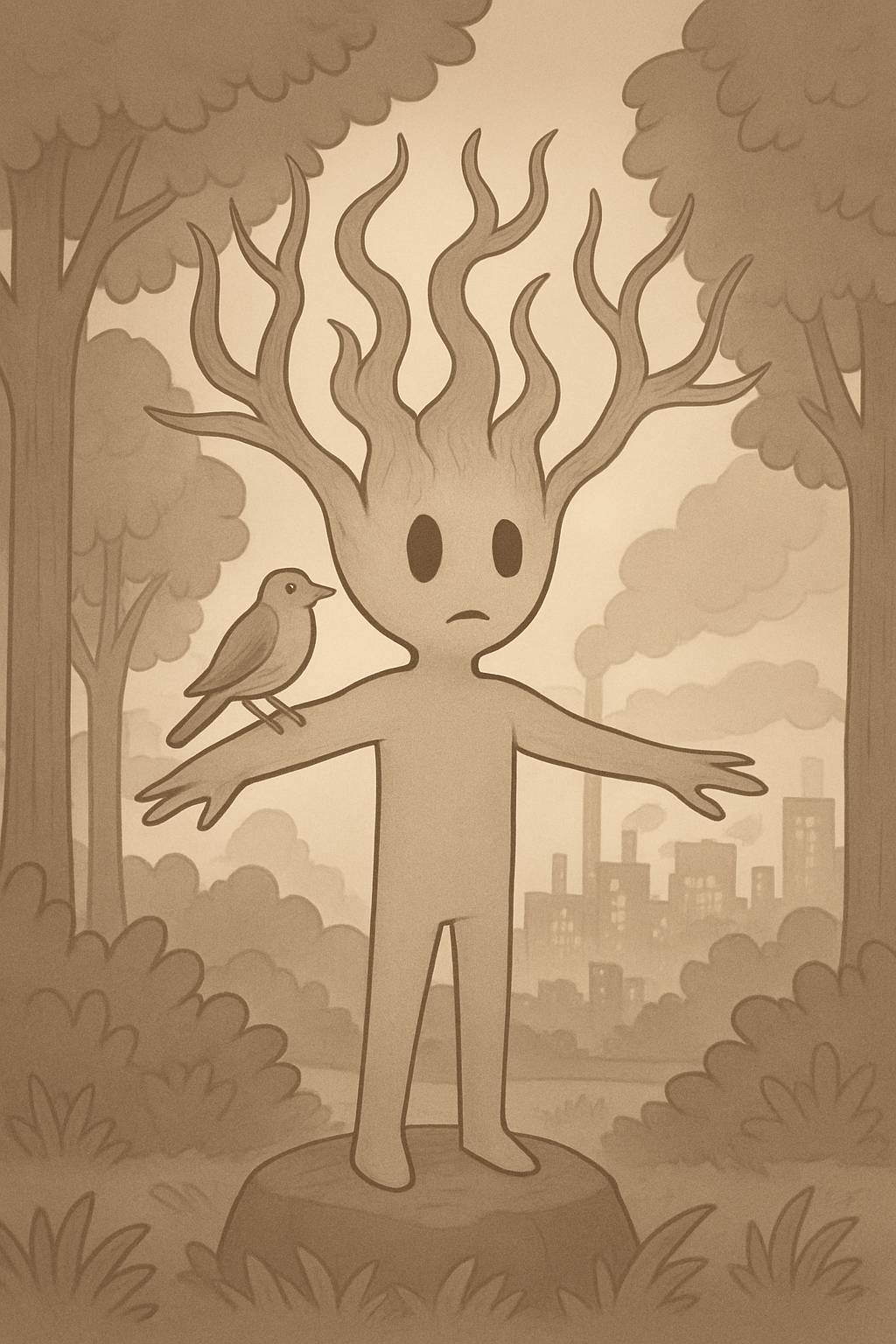 Он вытянулся, встал прямо, расправил руки, будто превращаясь в ствол и ветки.