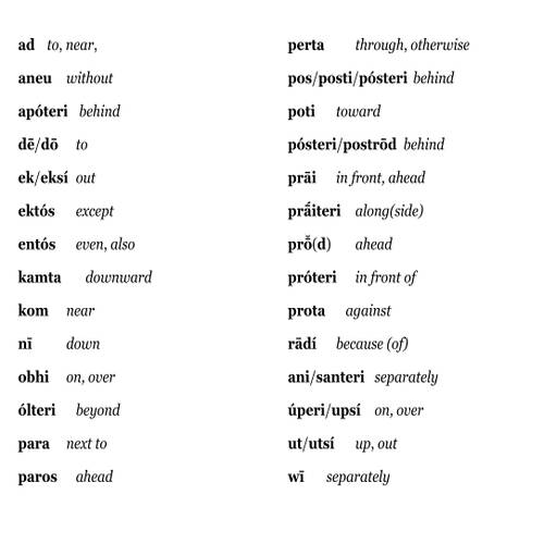 Классов глагола, как и в санскрите, дохрена, но в целом можно свести к 12 классам и еще есть неправильные глаголы. Две группы спряжения – тематические (8 классов) и атематические (4 класса) глаголы. Имеют специфику не только в образовании основ, но и в окончаниях. Подобно классы не вижу смысла описывать, так как язык изучается теоретически. В значительной степени всю эту громоздкую систему сохранил санскрит, в остальных древних языках упрощалось.