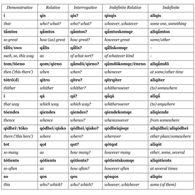 Многие местоимения коррелируют, что заметил позже Заменгоф и сделал это в эсперанто более системно, а в ИЕ было так: