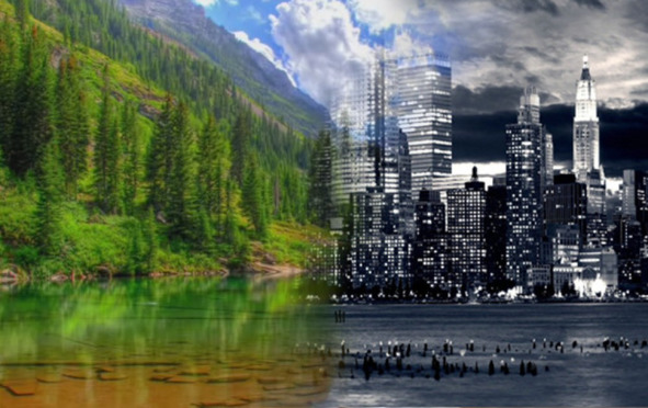 .Табиатни сиқиб чиқариш, шаҳарда табиий ландшафтни ўрнига уни сунъийлаштирди.