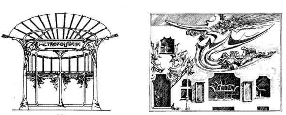 Париждаги ер устидаги метро павильони (Франция),арх. Г. Гимар,1900й. Мюнхендаги Эльвира фотоателье (Германия),арх. А. Эндель, 1897—1898йй.