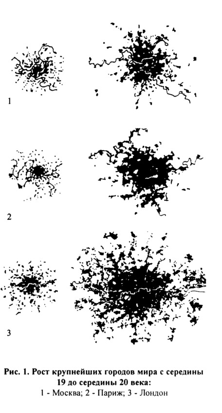 Рисунок 1 показывает рост крупнейших городов мира с середины 19 до середины 20 века. Москва, Париж и Лондон занимали лидирующие позиции в этом периоде.
