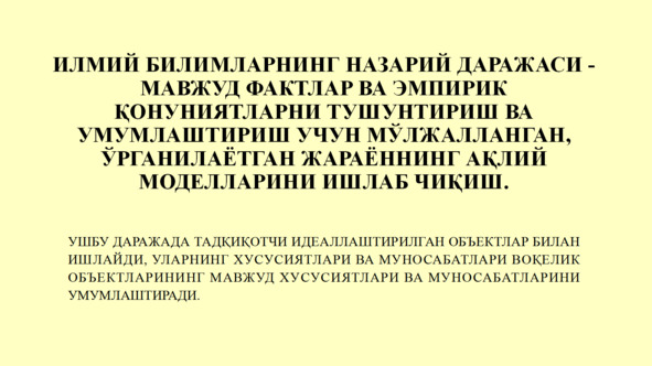 Иккинчидан, фан бу фаолиятнинг натижаси – тизим сифатида намоён бўлади илмий билим олди.